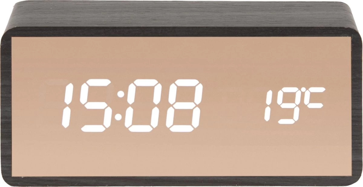 Uit de veren! De Copper Mirror wekker van Karlsson wekt je volledig in stijl. De strakke en moderne led-wekker is gemaakt van ABS. Zijn leuke houtlook frame en koperen spiegelfrontje zorgen ervoor dat de wekker op elk nachtkastje past. En je kunt direct kijken of je daadwerkelijk een schoonheidsslaapje hebt gehad. De Copper Mirror wekker van Karlsson is verkrijgbaar in de kleuren black en dark wood.
