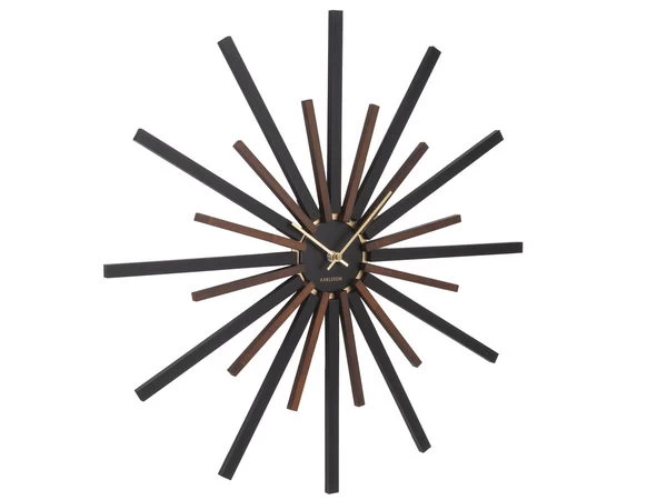 De rechte, matte lijnen in zwart en bruin, de behuizing van MDF en het toch vrij minimalistische ontwerp maken dit tot een klok die u graag aan de muur van uw gang zult willen hebben. De 12 lange balken van de ‘Diva’ wandklok zijn een ongewone markering, maar wel een die u de uren aangeeft. Deze design wandklok is beslist een detail dat in geen enkel interieur mag ontbreken.