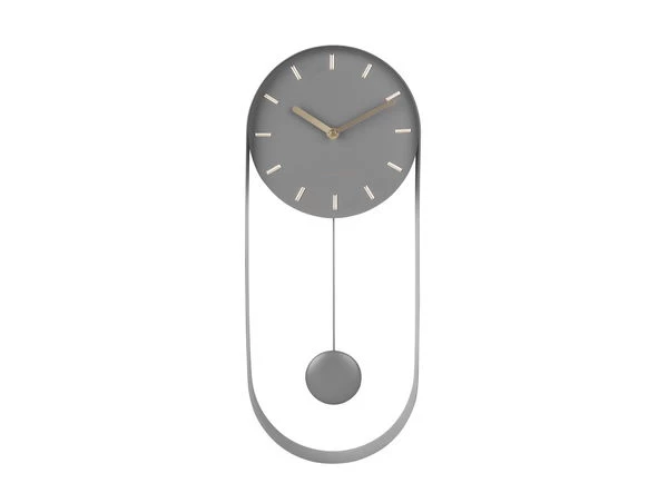 Deze design wandklok combineert alles: een kast van geborsteld grijs staal, een minimalistisch design, zilverkleurige wijzers en wijzers, een slinger en zelfs een frame. Maar de ‘Pendulum Charm’ zou nog steeds een gewone wandklok zijn als hij niet een unieke charme en een sfeer van rust en bescheidenheid in uw woonkamer zou brengen. En vooral, het gevoel dat je je niet hoeft te haasten omdat alles zijn tijd heeft.