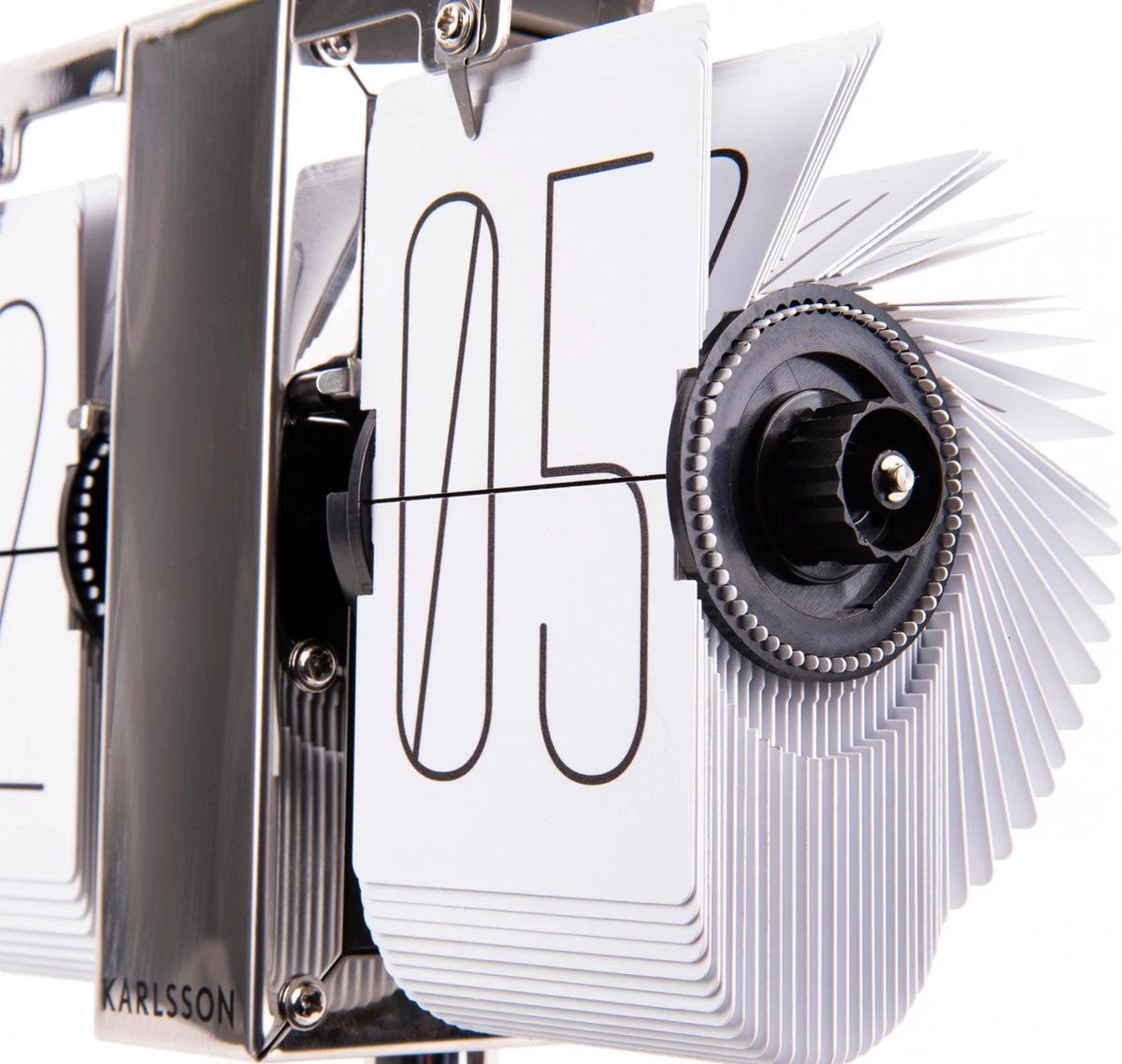 Dit is de mini versie van de populaire Flip klok No Case van Karlsson. De hippe Flip klok maakt indruk in je interieur door zijn bijzondere look. Elke minuut flipt voorbij met het omklappen van een kaartje. De bijzondere Karlsson klok heeft een standaard gekregen zodat hij eenvoudig kan worden neergezet, bijvoorbeeld in een boekenkast. Je kunt de standaard heel eenvoudig verwijderen zodat de Karlsson klok kan worden opgehangen aan de muur. Beschikbaar in vijf kleuren.