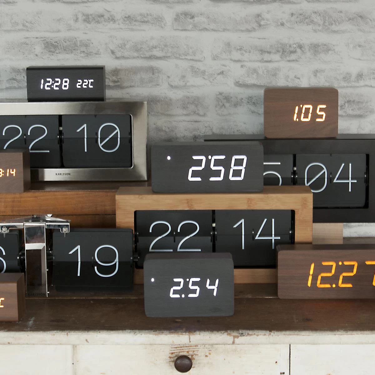 - De digitale cijfers schemeren door de wekker van houtfineer