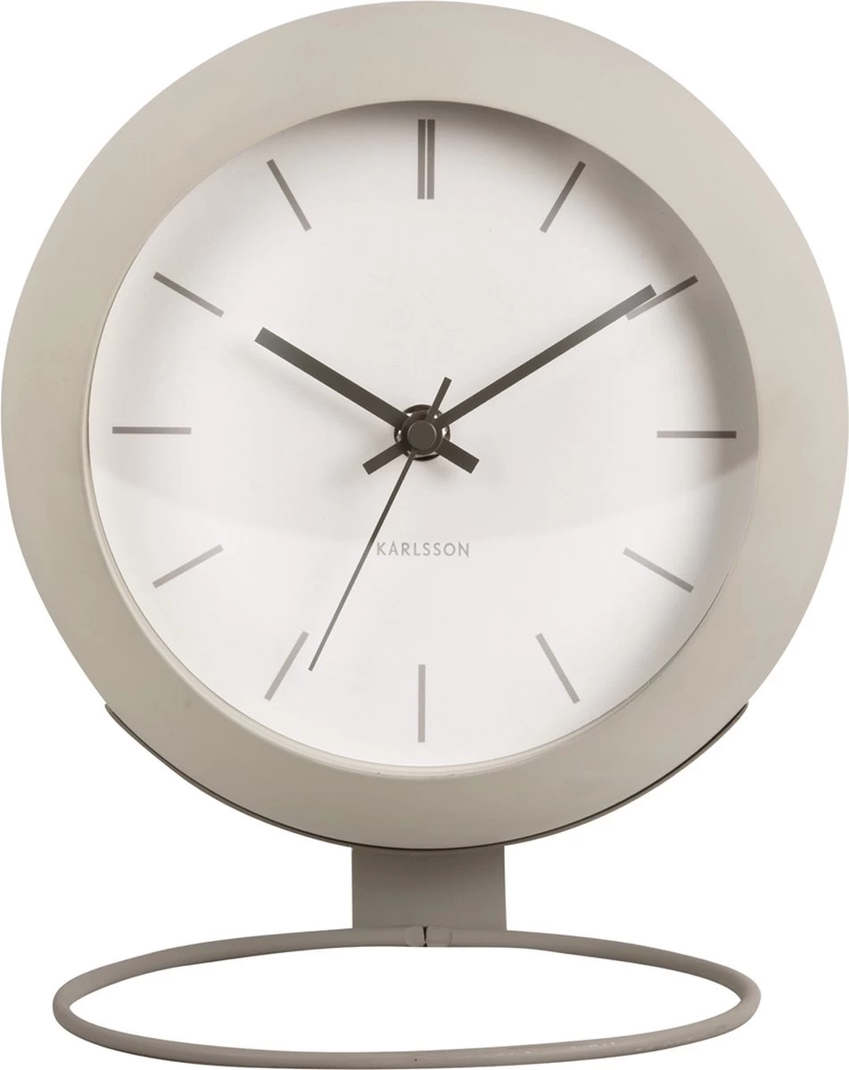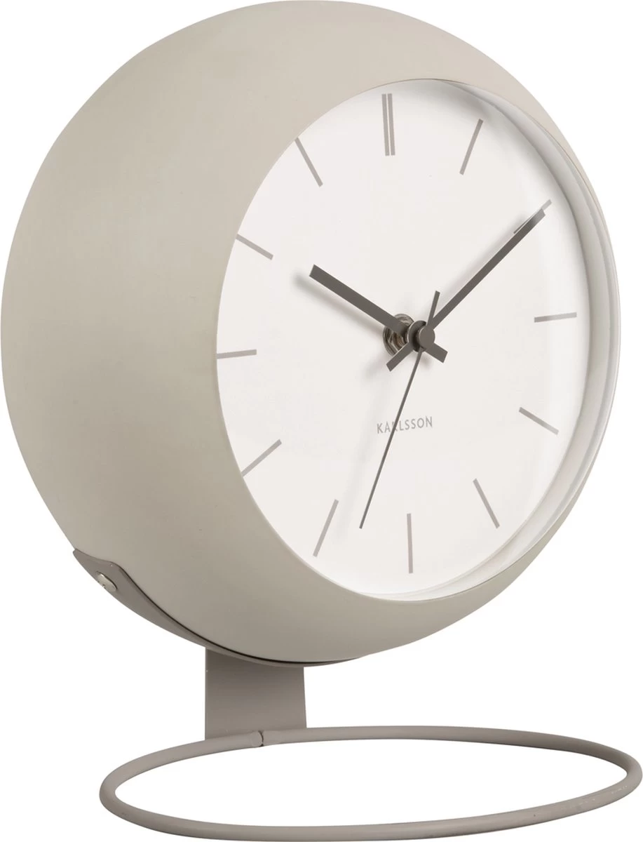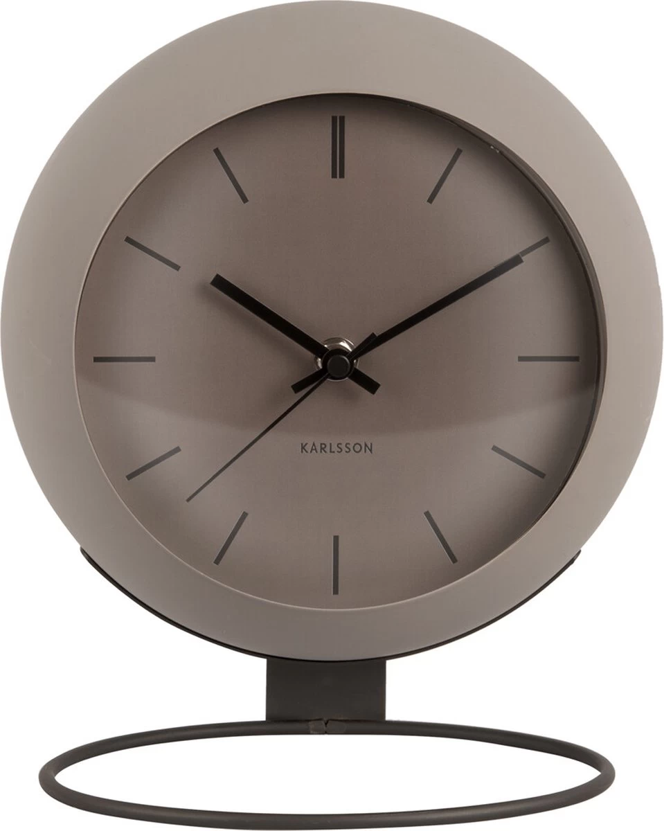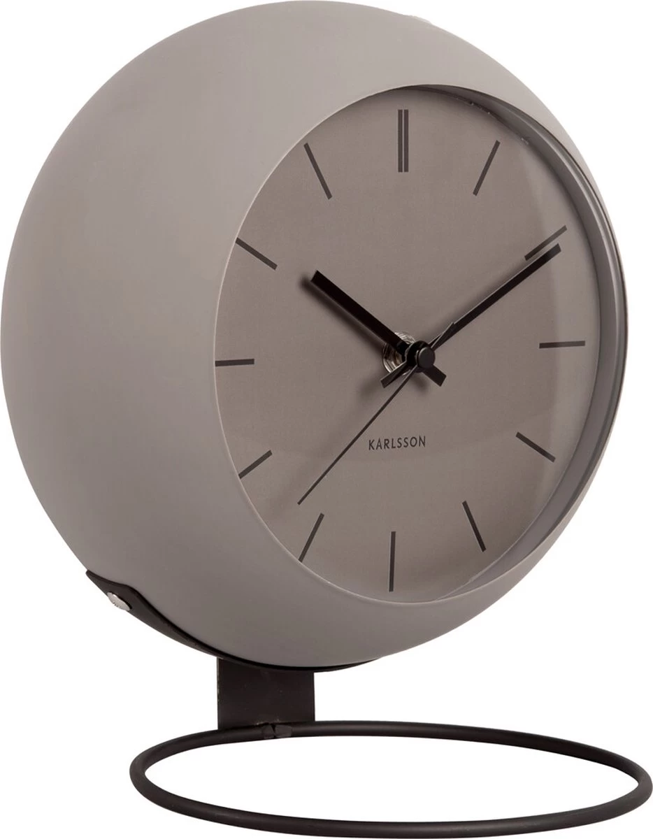 De wereld ligt aan je voeten met de Nirvana Globe tafelklok van Karlsson. De speelse ijzeren klok dankt zijn naam aan zijn ronde jasje en hoort bij de succesvolle Globe-serie van Karlsson. De stijlvolle klok staat op een industriële, ronde standaard waardoor hij een zwevend effect heeft en op elke plek ruimtelijk oogt. De Nirvana Globe tafelklok komt in de kleuren warm grey, sand brown en dark warm grey.
