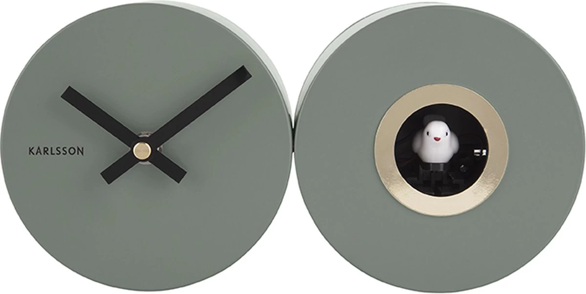 Hey stoere koekoek! De Karlsson wandklok Duo Cuckoo heeft het uiterlijk van een stoere klok, maar is tóch een koekoeksklok. Elk uur komt er een vogeltje tevoorschijn die zachte bosgeluiden maakt. De Karlsson Duo Cuckoo is voor liefhebbers van modern design die een voorliefde hebben voor de speelse elementen van de klassieke koekoekslok. De klok is verkrijgbaar in verschillende trendy kleuren zoals jungle green, mouse grey en matt white. Koekoek!
