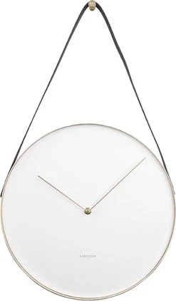 Wandklok Belt van Karlsson maakt veel indruk. Het ontwerp Belt is onderdeel van een drieluik ontworpen door Anne Rieck. In deze serie van drie designs vind je wandklok Hook, wandklok Pendulum en wandklok Belt. Belt is super elegant met een chique leren band waaraan de klok kan worden opgehangen. Wandklok Belt van Karlsson heeft een puristische vormgeving met een zwarte wijzerplaat en goudkleurige details. Een plaatje!