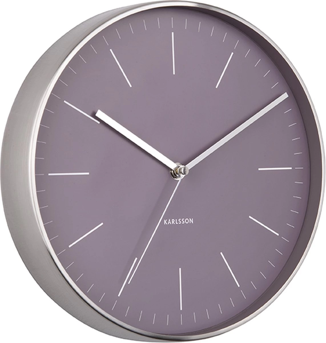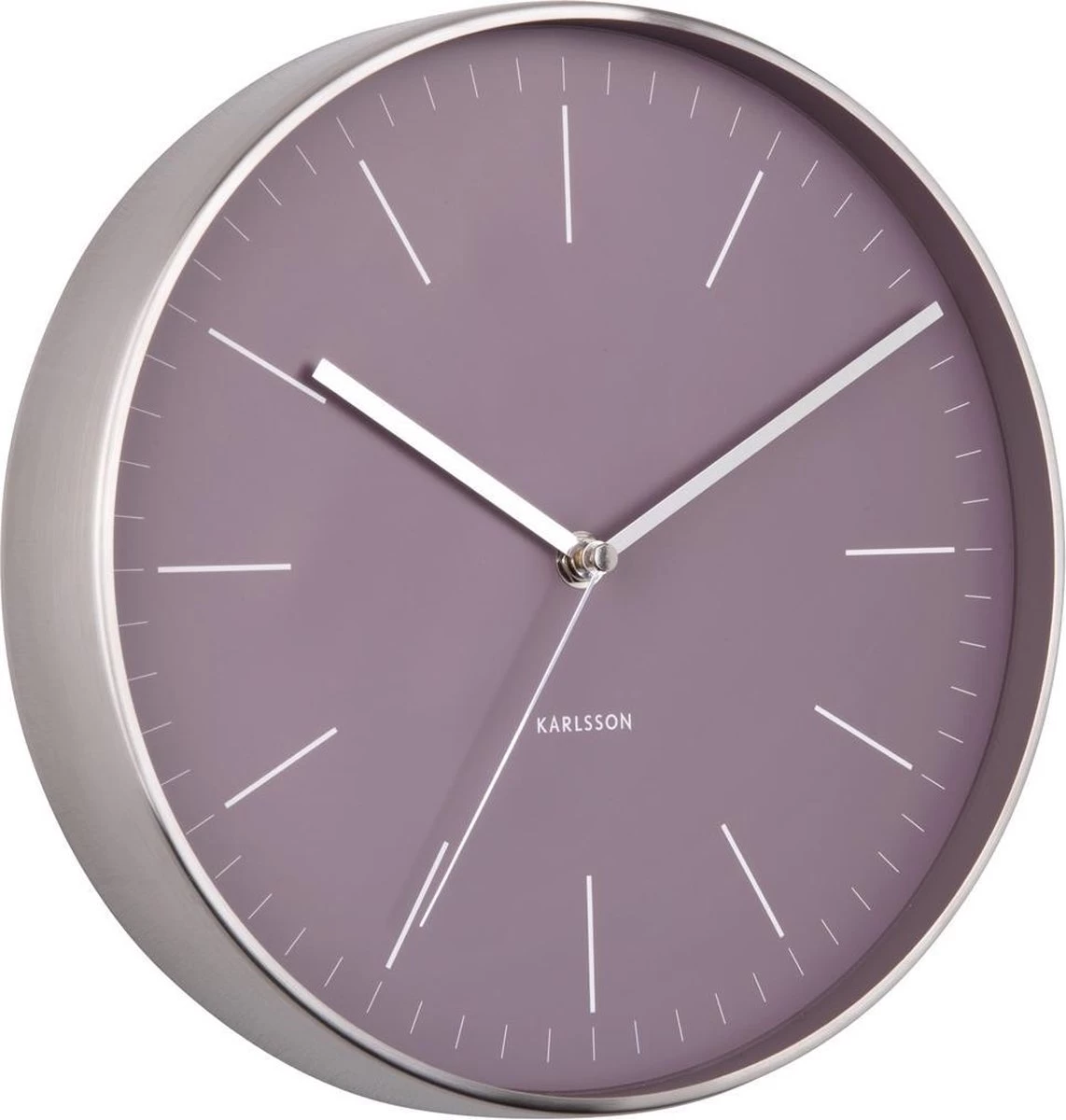 Klokje, klokje aan de wand. De Karlsson wandklok Minimal onderstreept de stijl van elke wand én interieur door zijn minimalistische uiterlijk. Deze Karlsson smaakmaker past in elk plekje van je huis, van woon- tot slaapkamer. De Karlsson Minimal wandklok is verkrijgbaar in verschillende trendy kleuren en is optisch het grote broertje van een horloge wijzerplaat. Kijk maar naar zijn slanke en lange wijzers en simpele wijzerplaat. De klok heeft een diameter van 27,5 cm (wordt geleverd zonder 1 AA batterij).