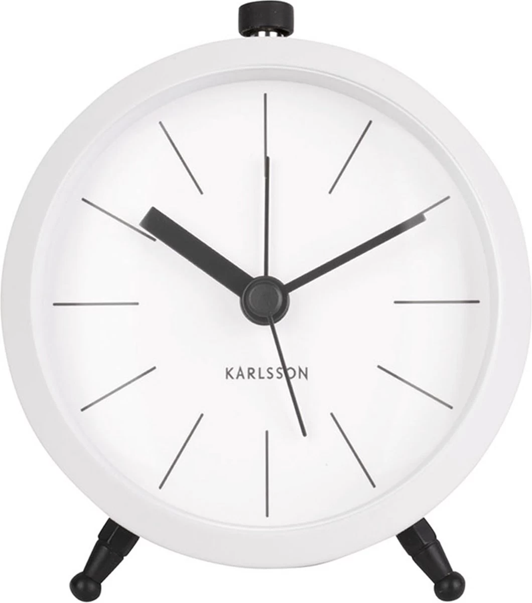 Opstaan! Wekker Button van Karlsson doet niets liever dan jou mooi op tijd wakker te maken. Met zijn minimalistische en strakke design past hij perfect op elk nachtkastje. De wekker heeft een handige aan- en uitknop bovenaan, zodat je niet half slapend naar de uitknop hoeft te zoeken. Werkt op 1 AA batterij (niet inbegrepen).