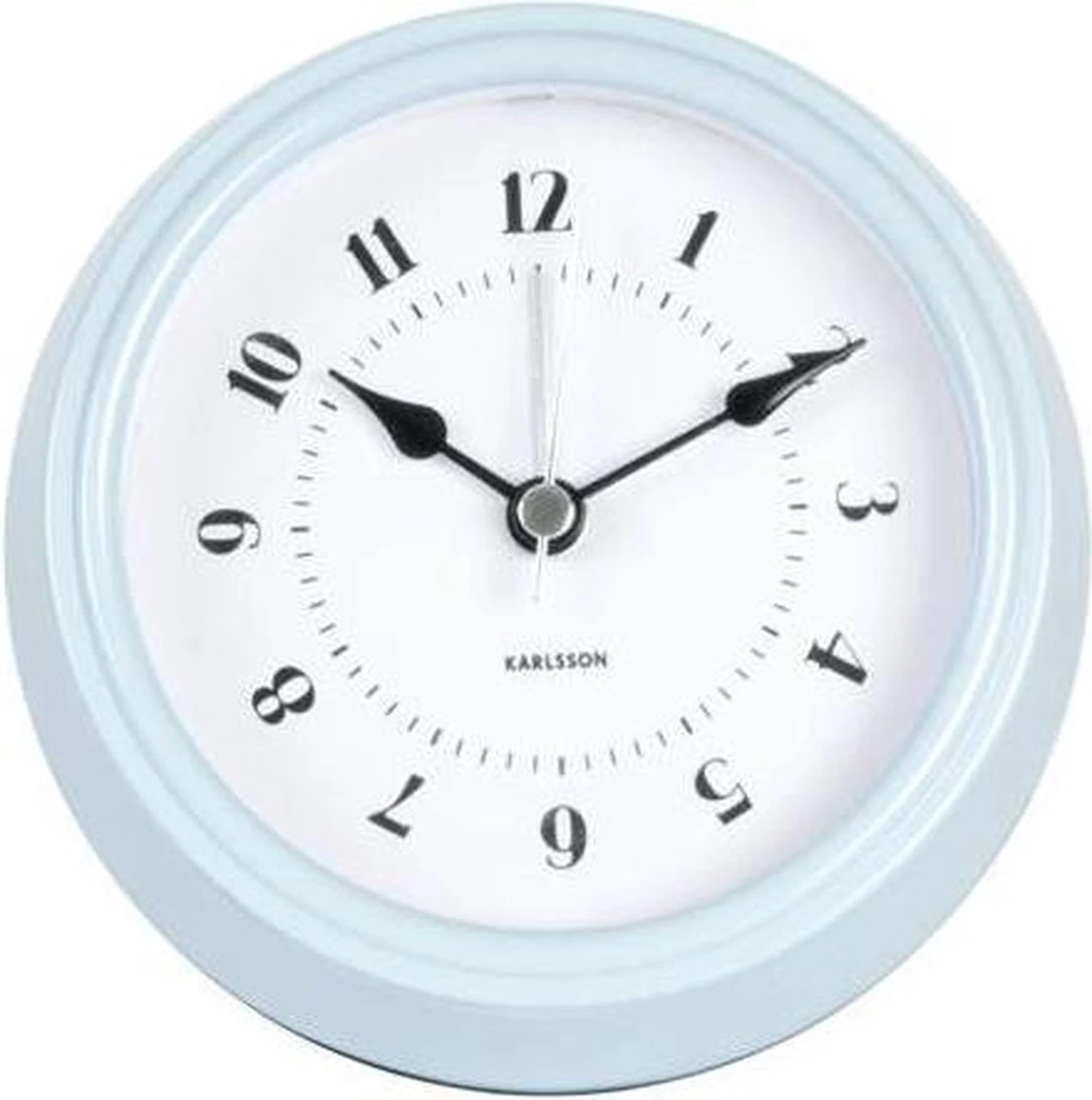 Een Karlsson wekker in de echte retro fifties style. De wekker heeft een klassieke wijzerplaat met een metalen rand in de zachte kleur licht groen.